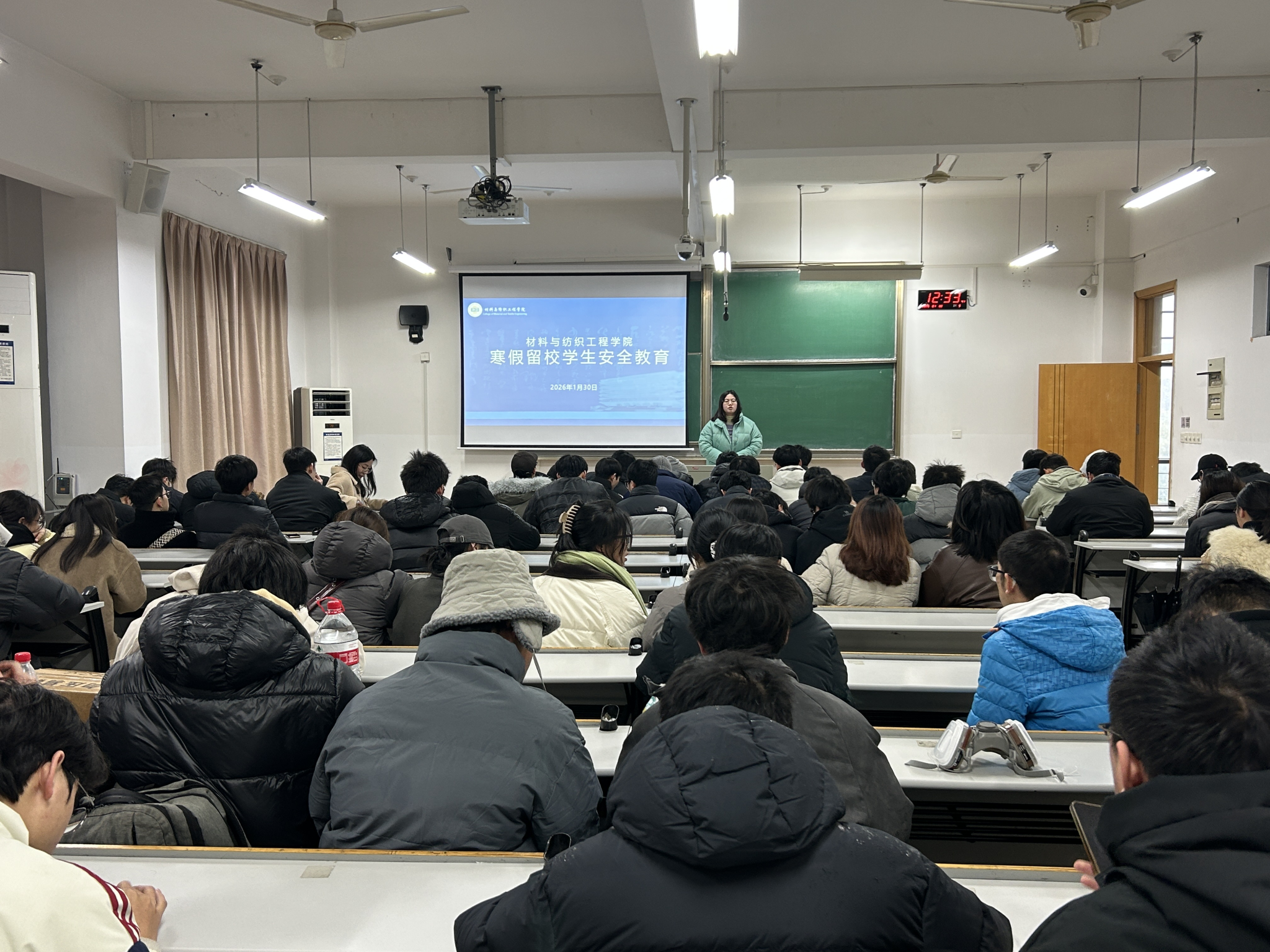 为切实做好寒假期间留校学生的管理和服务工作,保障学生留校期间的生命财产安全与科研生活有序开展,1月30日,材料与纺织工程学院在崇礼楼402室召开寒假留校学生安全教育会议。学院副院长代正伟、党委副书记马晓红、研究生辅导员、本科生辅导员、全体寒假留校学生等参会。