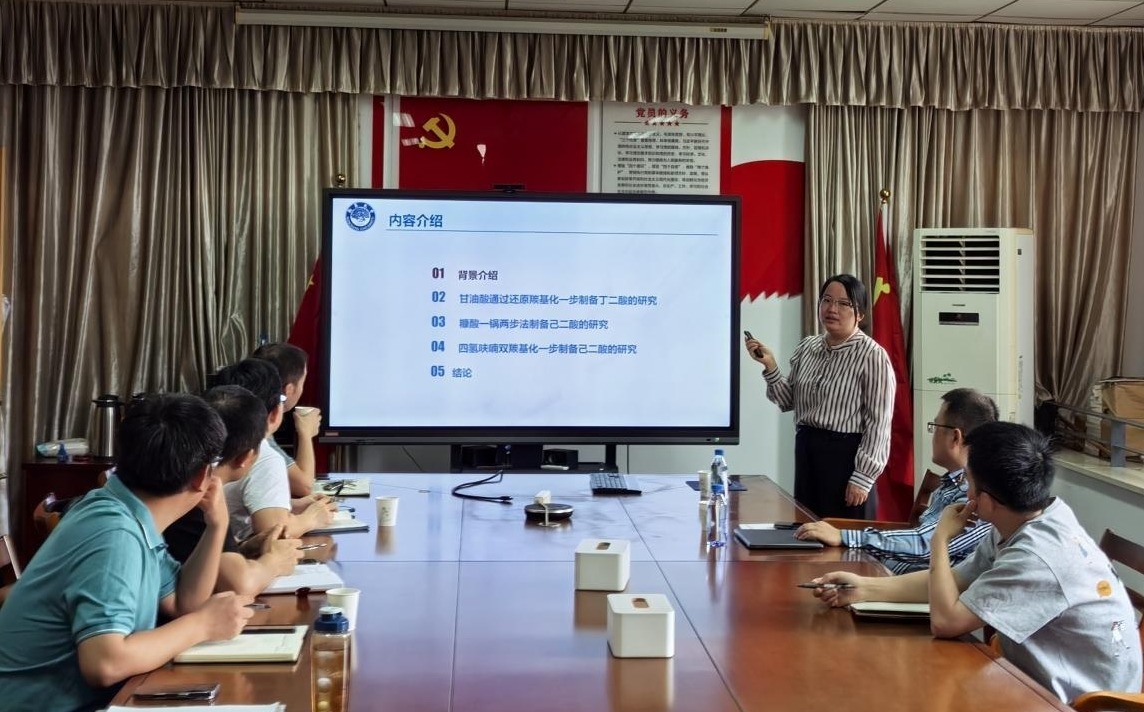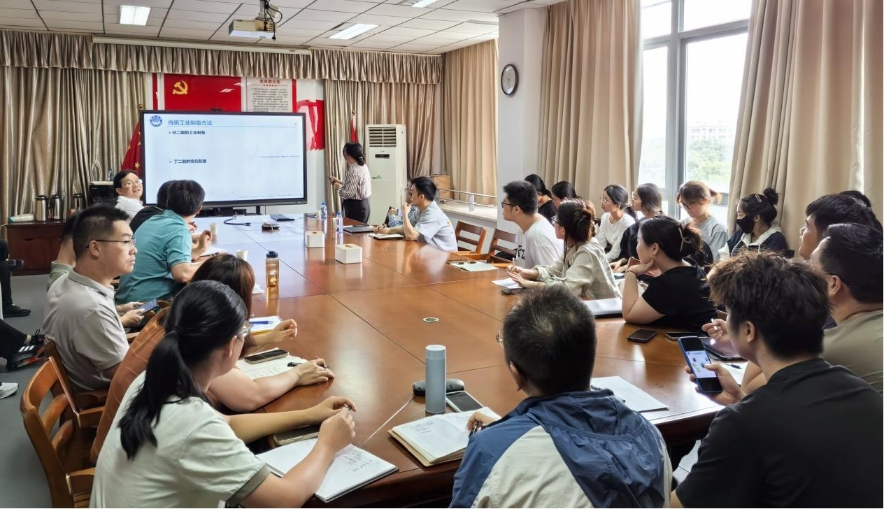 2025年9月29日,南昌大学化学化工学院杨维冉教授由材料与纺织工程学院崔利教授邀请来访我校,在崇礼楼419会议室,作了题为《通过羰基化策略制备生物基二元羧酸的研究》的学术讲座。本次讲座由材料与纺织工程学院副院长沈加加教授主持,材纺学院部分教师及研究生参会学习。